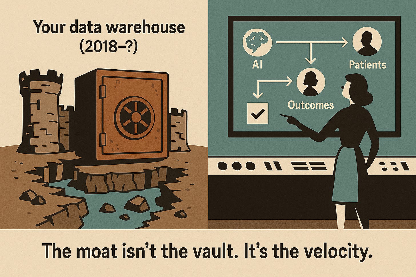 But for those who’ve felt the real bottleneck, who’ve seen the endless decks about exclusive datasets go nowhere fast, who’ve tried — and failed — to integrate AI into actual care delivery? You know this is true. The moat isn’t the vault.